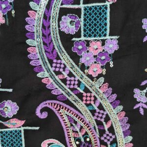 - جذابههای بصری: سوزندوزیهای زیبا که بر روی این پارچه اجرا شدهاند، باعث ایجاد ظاهری جذاب و منحصر به فرد میشوند. این ویژگی باعث شده تا بتوانید از این پارچه در انواع لباسها و اقلام دکوراتیو استفاده کنید.