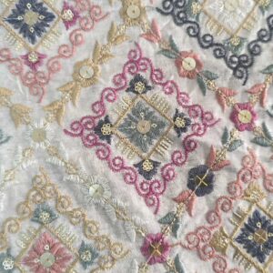 طرحهای سوزندوزی: با سوزندوزیهای زیبا و دقیق، این پارچه نه تنها برای لباس، بلکه برای صنایع دستی و دکوراسیون داخلی نیز مناسب است.