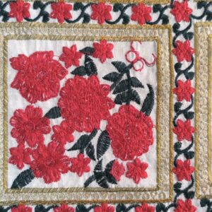 - سوزندوزی دستساز: این پارچه با نقوش و طرحهای سوزندوزی زیبا تزئین شده است که هر نمونه از آن بهطور منحصر به فرد و هنرمندانه طراحی شده است.